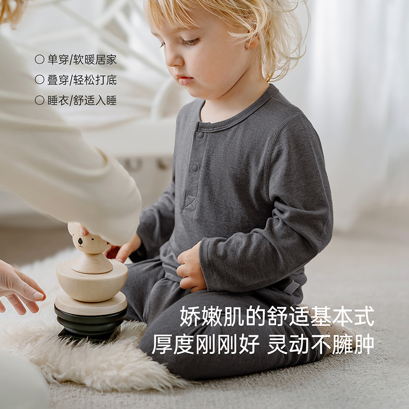 babylove寶寶內(nèi)衣套裝 秋冬家居服嬰幼兒睡衣羊毛保暖打底秋衣秋褲由