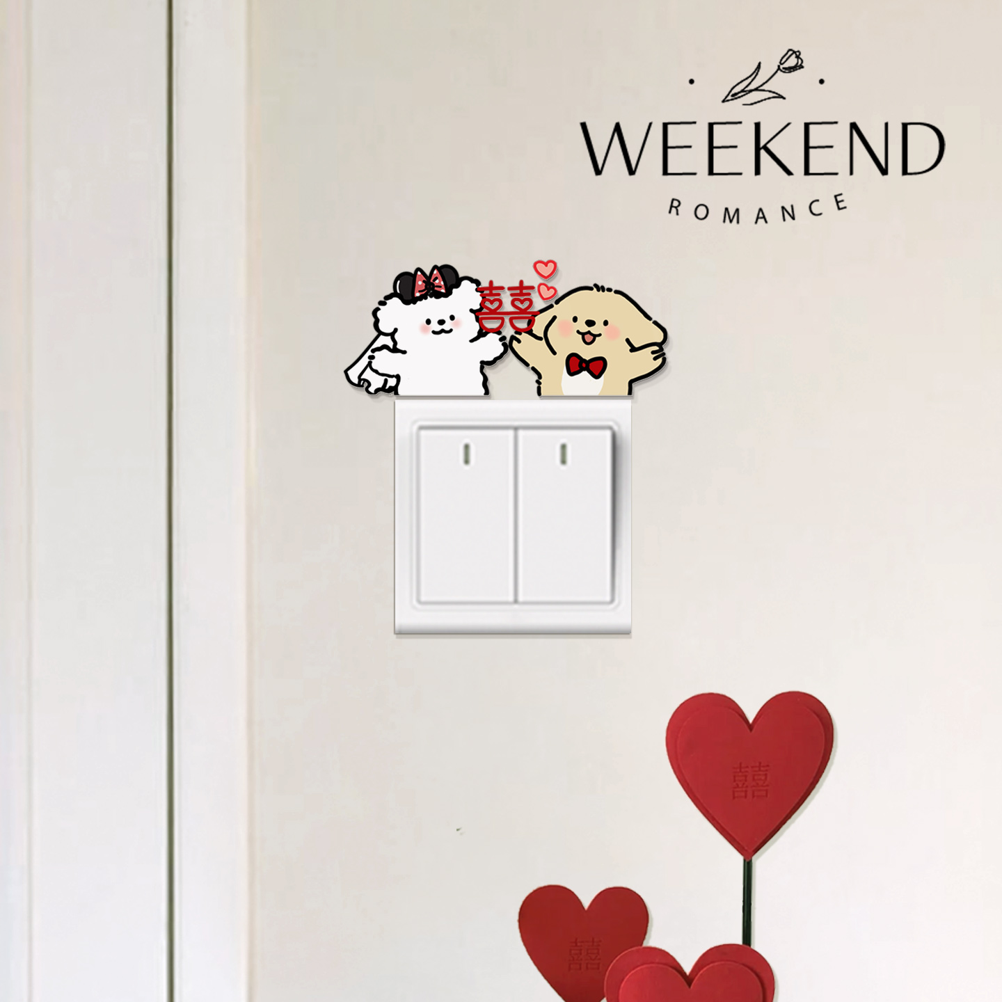 飾開關裝 飾墻貼可愛開關貼結婚高級感 飾插座遮擋裝 結婚布置婚房裝由