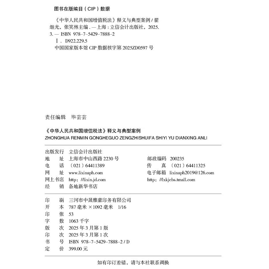 全2冊2025年版 中華人民共和國增值稅法釋義與典型案例立信會計出版 社正版 財務稅法書籍 中華人民共和國現行稅收法規及優惠政策解讀由