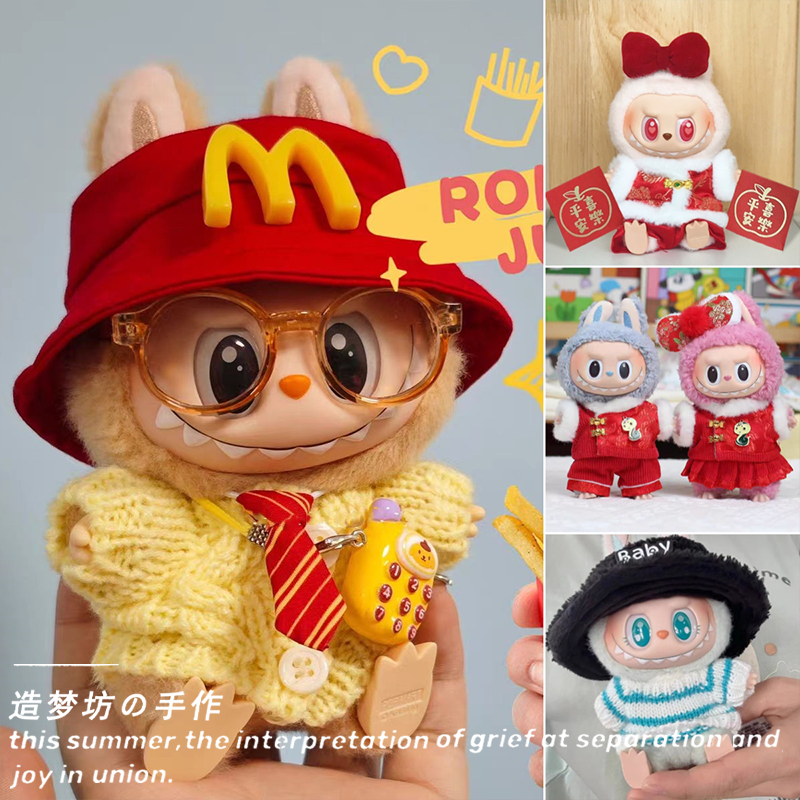 labubu衣服一二三代坐坐派對多巴胺娃衣搪膠公仔拉布布麥當勞帽子由