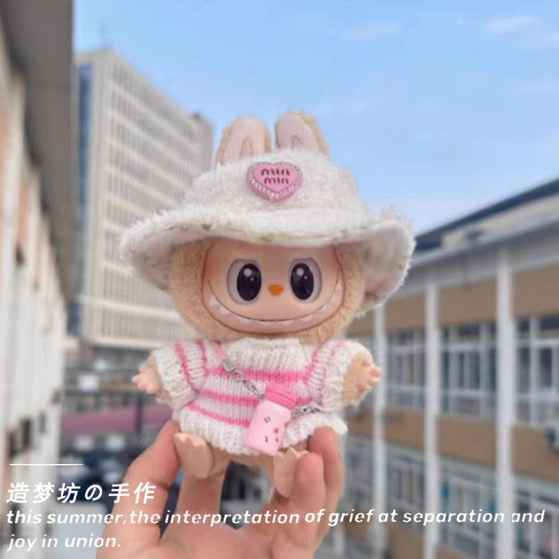 17cm拉布布labubu娃衣10cm棉花娃娃米奇家族黑白灰潮流衛衣帽衫 褲