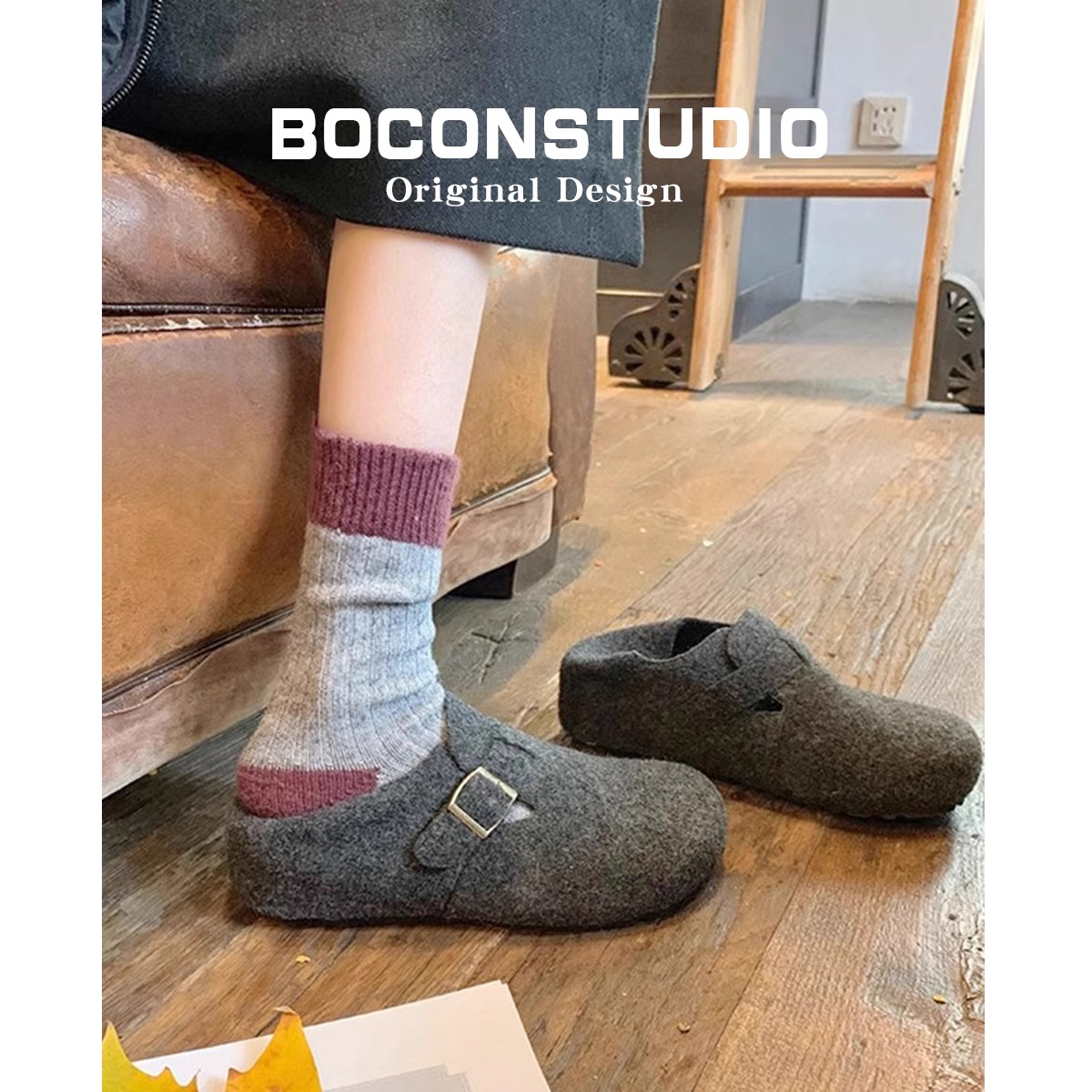 女加絨秋冬保暖毛毛半拖外穿厚底博肯鞋 內(nèi)增高勃肯鞋 叁叔家由