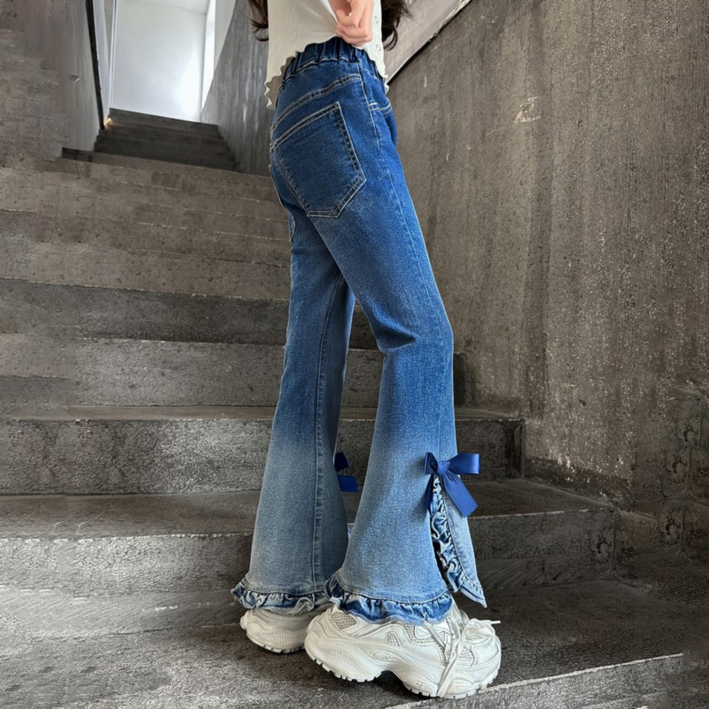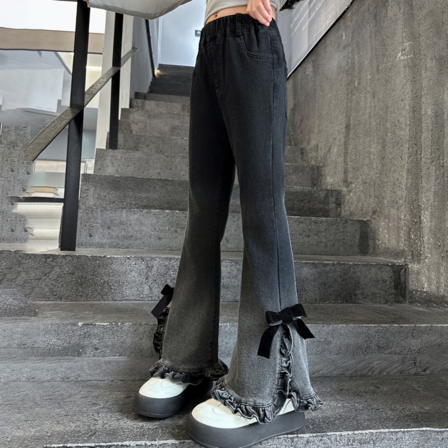 彈力休閑長(zhǎng)褲 女童牛仔褲 春秋2025新款 兒童秋裝 子中大童女孩喇叭褲由