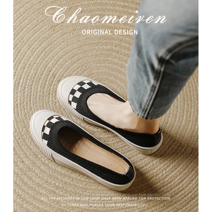 漁夫鞋 日系王妃鞋 休閑透氣2025夏季 新款 軟底飛織一腳蹬平底懶人鞋由
