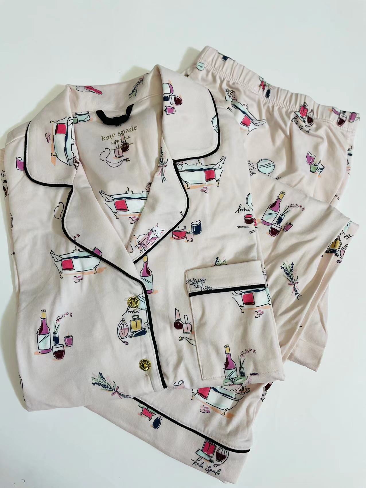 出口美國輕奢ks睡衣可愛小貓咪浴缸甜美家居服短袖 牛奶絲 八分褲由