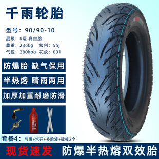 千雨摩托車輪胎90 10寸真空胎電動車半熱熔防爆缺氣保用踏板車由