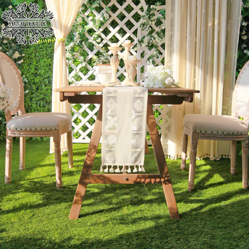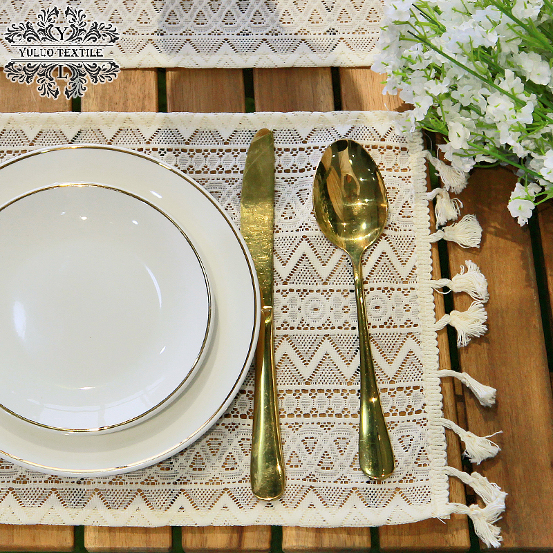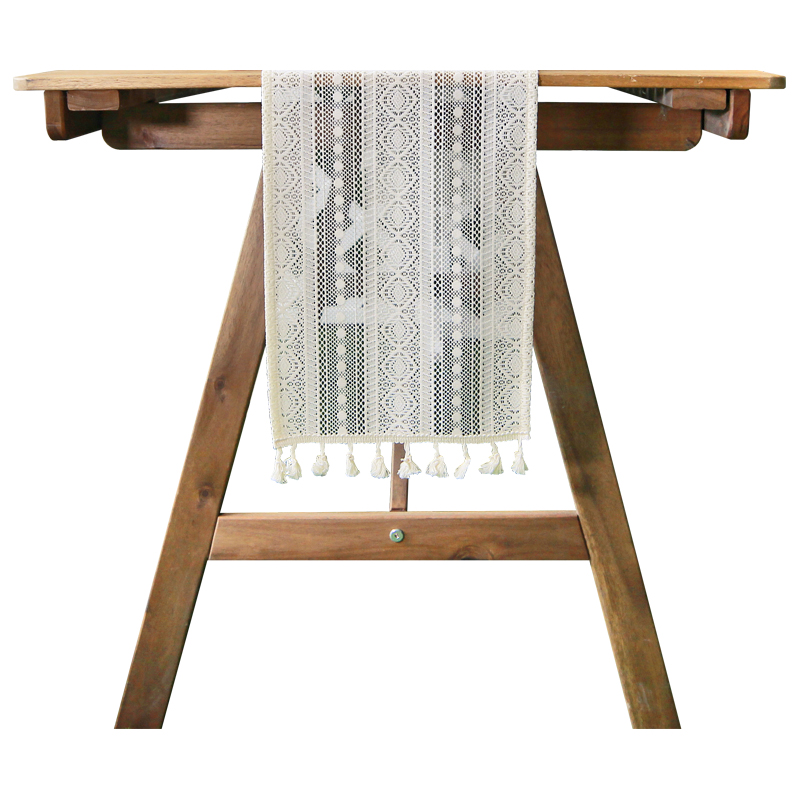 法式 復古婚禮ins風流蘇穗子茶幾旗餐墊 田園鏤空編織蕾絲桌旗美式由