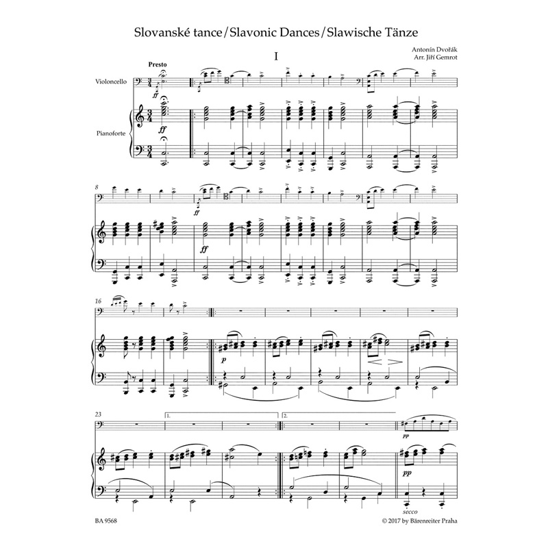 騎熊士原版 BA9568 for 含分譜 op46 Violoncello Slavonic 斯拉夫舞曲 Dances op.46——Arranged Dvorák 德沃夏克 大提琴和鋼琴由