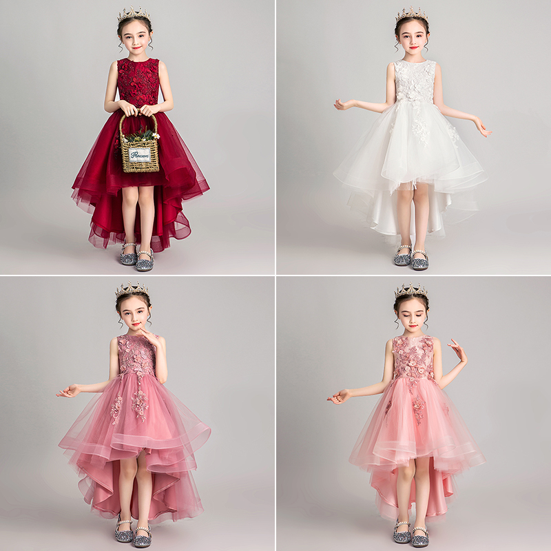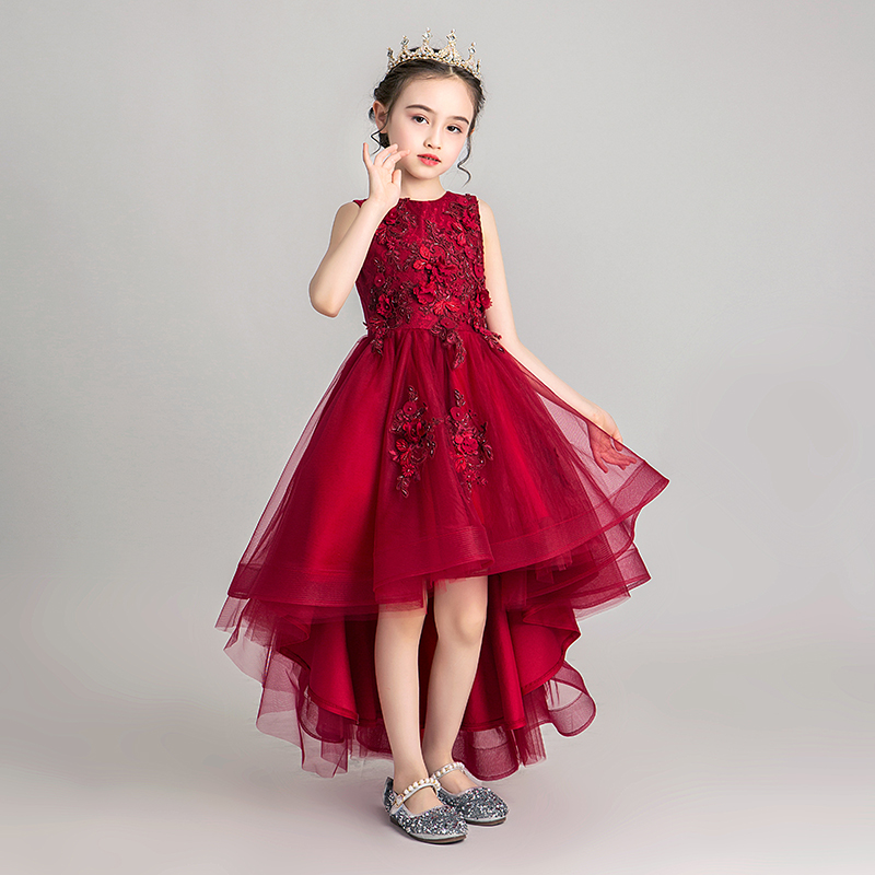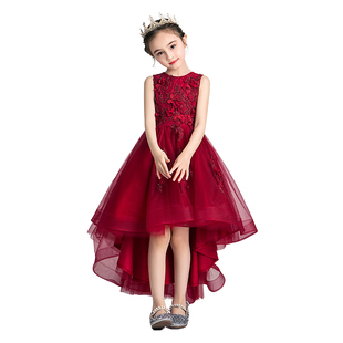 兒童晚禮服公主裙女童生日小花童婚紗主持人鋼琴演出服紅色夏季由