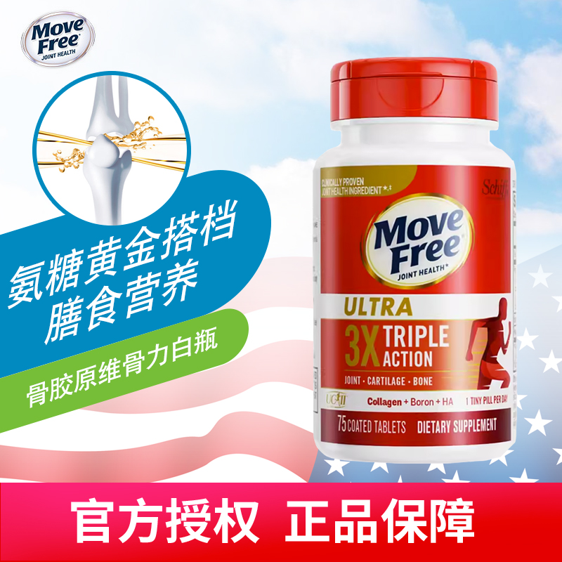 move 進口氨糖軟骨素雙瓶 free益節骨膠原蛋白白瓶75粒美國原裝由