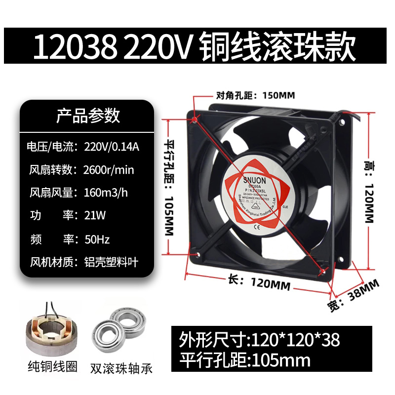 12cm SNUON KTV機柜散熱風扇 DP200A 軸流風扇 12038散熱風扇220V由