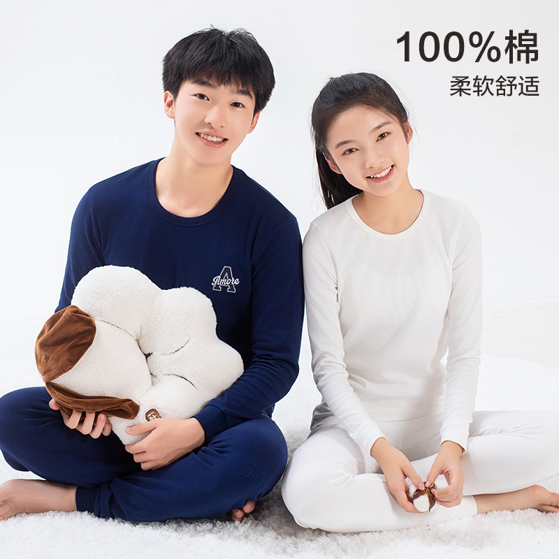 套裝 少女士男大童保暖內衣初中高中學生 秋衣秋褲 青少年純全棉毛衫由
