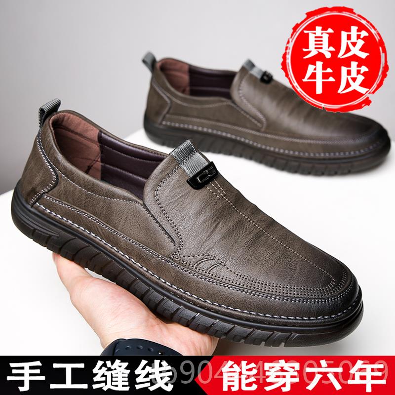 百搭中年爸爸閑鞋 正品 腳寬休皮鞋 男真皮透男氣一腳蹬豆豆鞋 防滑款由