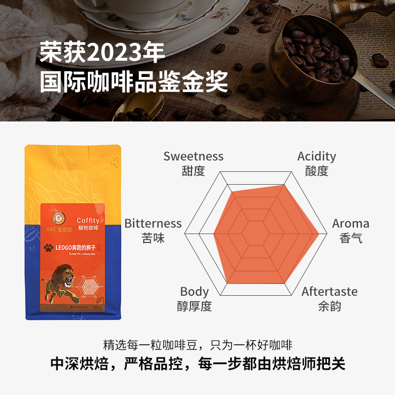 獅子拼配咖啡豆 精品新鮮烘焙現(xiàn)磨咖啡 釀?chuàng)孡EOGO奔跑 德馨珍選由