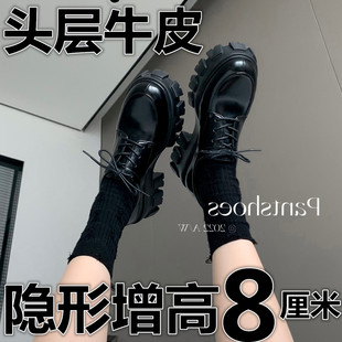 皮鞋 深口單鞋 新款 女2025秋季 胡連馨同款 千百度厚底真皮樂福鞋