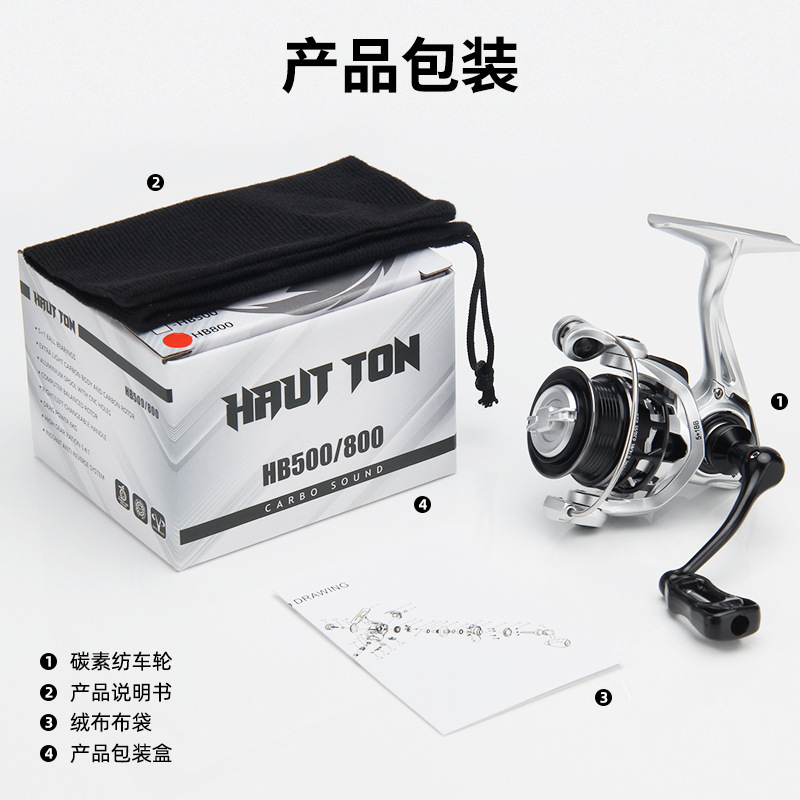 皓頓碳素微物紡車輪500型號漁輪800路亞輪漁輪無間隙魚線輪HB由