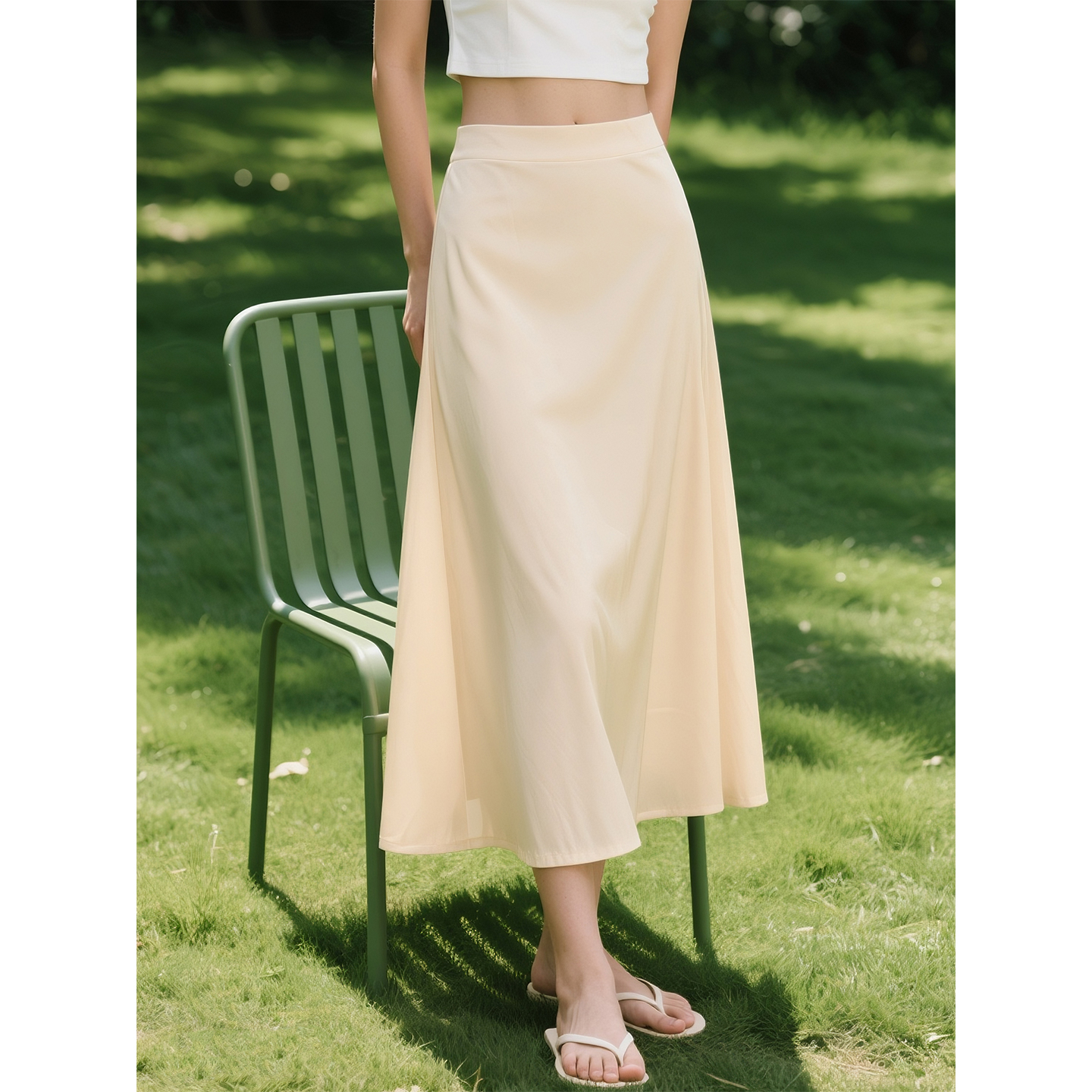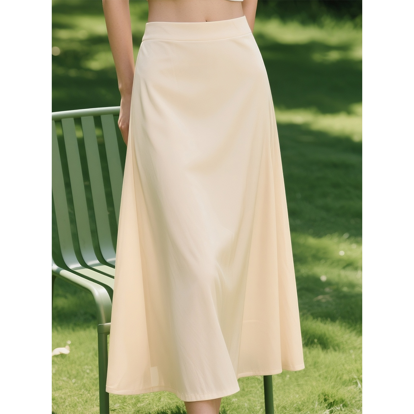 杏色半身裙女2025年夏季 法式 高級感氣質高腰中長款 a字大擺裙 新款由