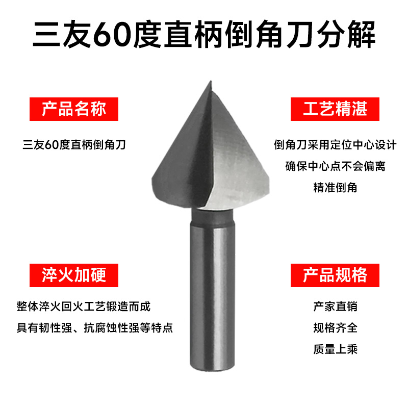 三友含鈷鍍鈦涂層不銹鋼去毛刺直柄擴(kuò)沉孔鉆頭倒角刀60度單刃三刃由