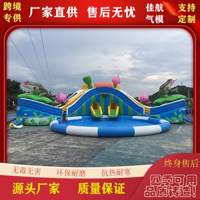 充氣移動水上樂園設備大型水上滑梯荷塘月色飛人滑梯戶外支架水池由