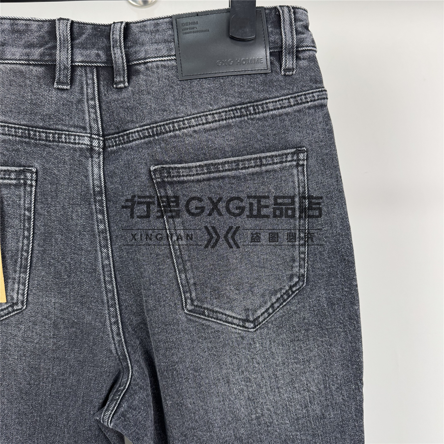 褲 GXG男裝 子G25X054079E98 男士 黑灰色加絨直筒牛仔褲 2025冬季 新款由