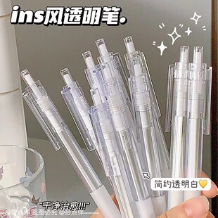 透明奶白中性筆ins巨能寫高顏值0.5mm學生用黑色筆芯全針管刷題筆由