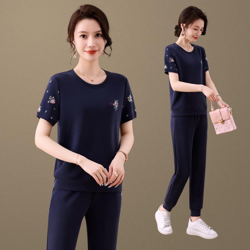 女新夏905275洋氣減款 澤梵時尚 希休季 閑運動套裝 兩件套 齡顯瘦短袖由