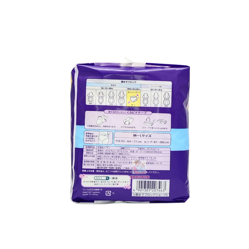 衛(wèi)生巾無熒光劑5片 日本進(jìn)口花王樂而雅棉柔超吸收量大安心夜用褲由