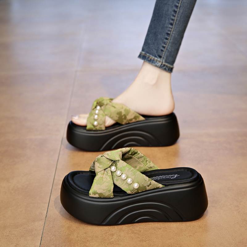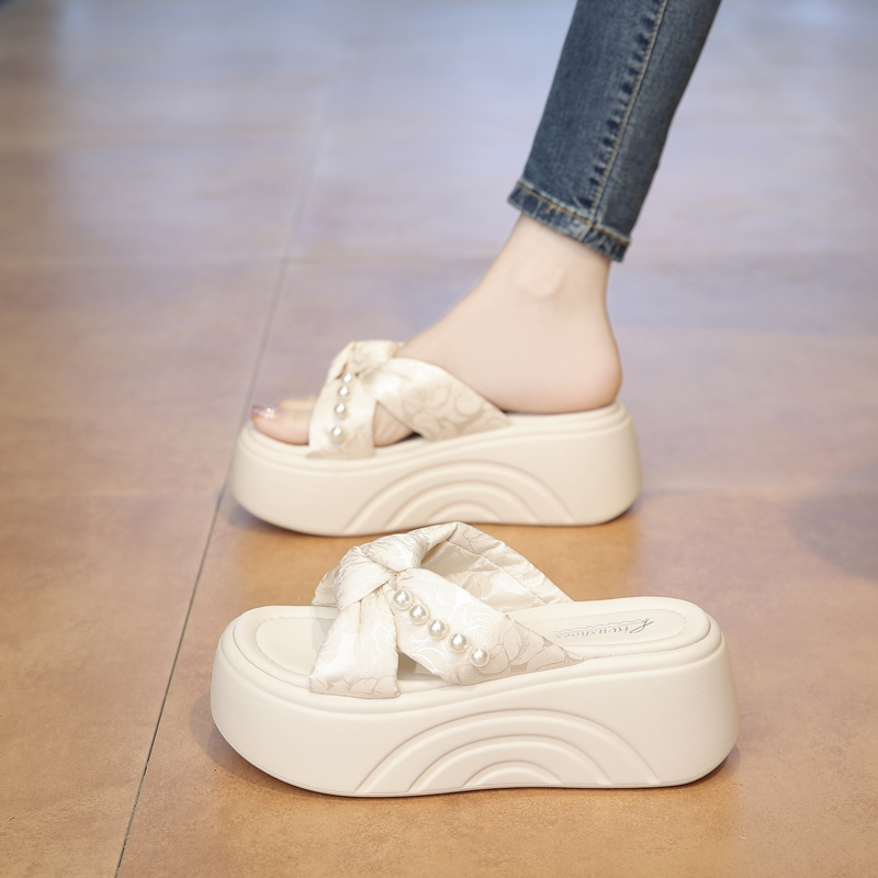 小個子松糕涼鞋 厚底拖鞋 女夏季 外穿2025新款 絕美配裙子珍珠沙灘鞋由