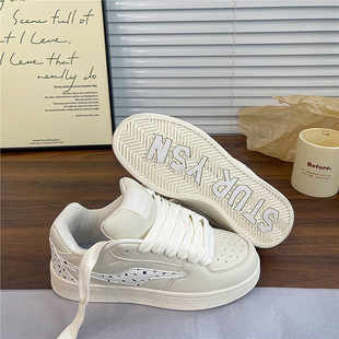 學生百搭休閑板鞋 易少年 新款 女ins潮2025秋季 韓版 小眾奶油面包鞋由