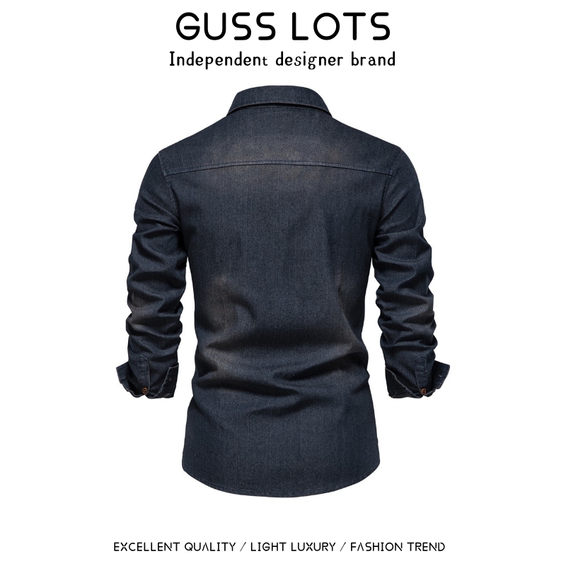 牛仔系列男士 CountryMan 休閑純色丹寧長袖 襯衫 修身 Gusslots由