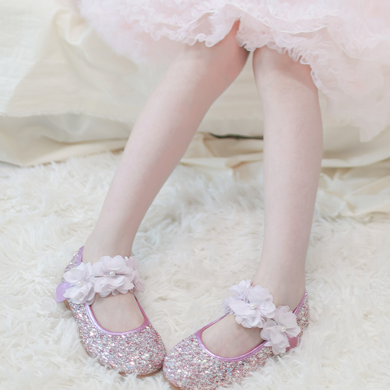 亮片水晶鞋 女童LW43028 winkaa繁花立體網紗花朵兒童公主鞋 Little由