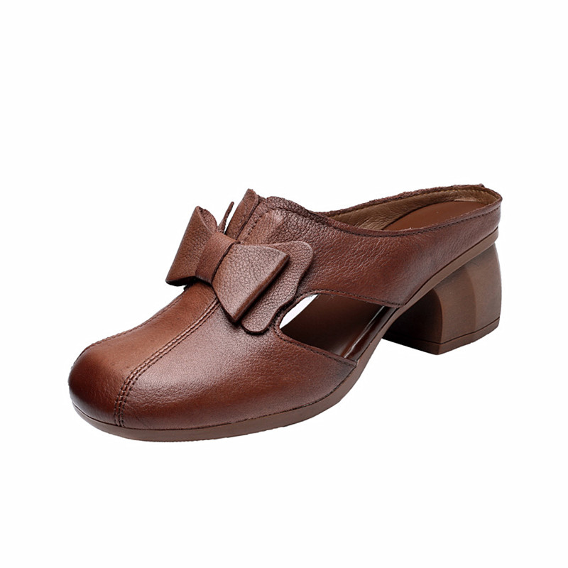 半拖鞋 包頭涼拖鞋 時尚 中跟女士涼鞋 女真皮外穿粗跟2025年夏季 新款由