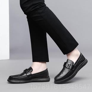 休閑皮鞋 七匹狼真皮豆豆鞋 男一腳蹬懶人樂福鞋 黑色男士 2025年秋季