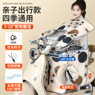 親子電動車擋風被四季 通用開叉防水防風防曬罩電瓶摩托帶小孩冬季由