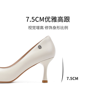高跟鞋 夏季 白色軟皮尖頭細跟淺口通勤禮儀面試職業單鞋 女2025新款