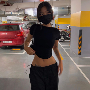 街頭辣妹時尚 WEIRD PUSS 美式 T恤 設計感露背緊身正反兩穿百搭短袖由