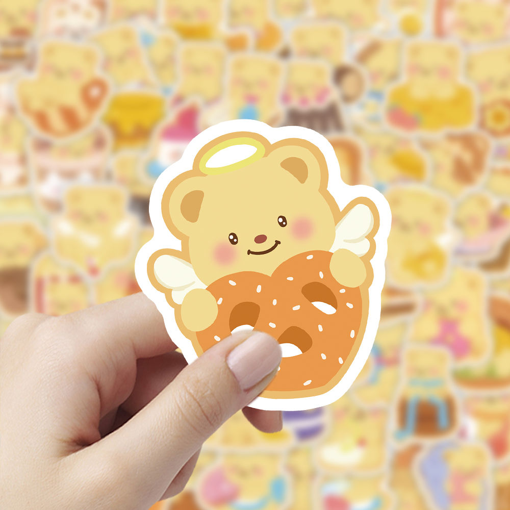 飾手機殼手賬素材呆萌防水粘貼畫 100張黃油小熊貼紙卡通可愛diy裝由