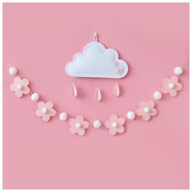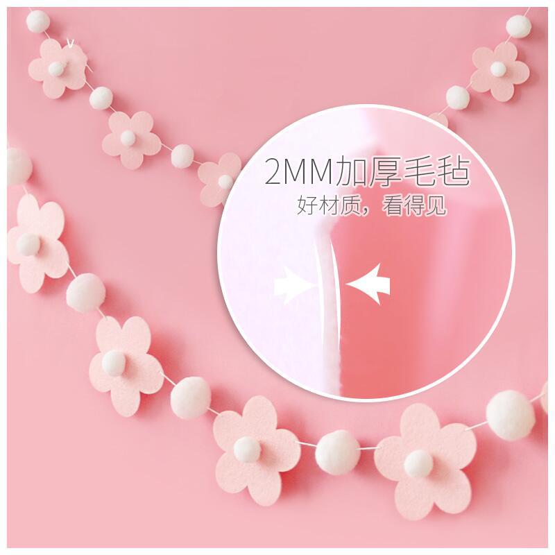 白 飾櫥窗 粉色花朵毛氈拉旗生日派對場景布置幼兒園店鋪房間裝由