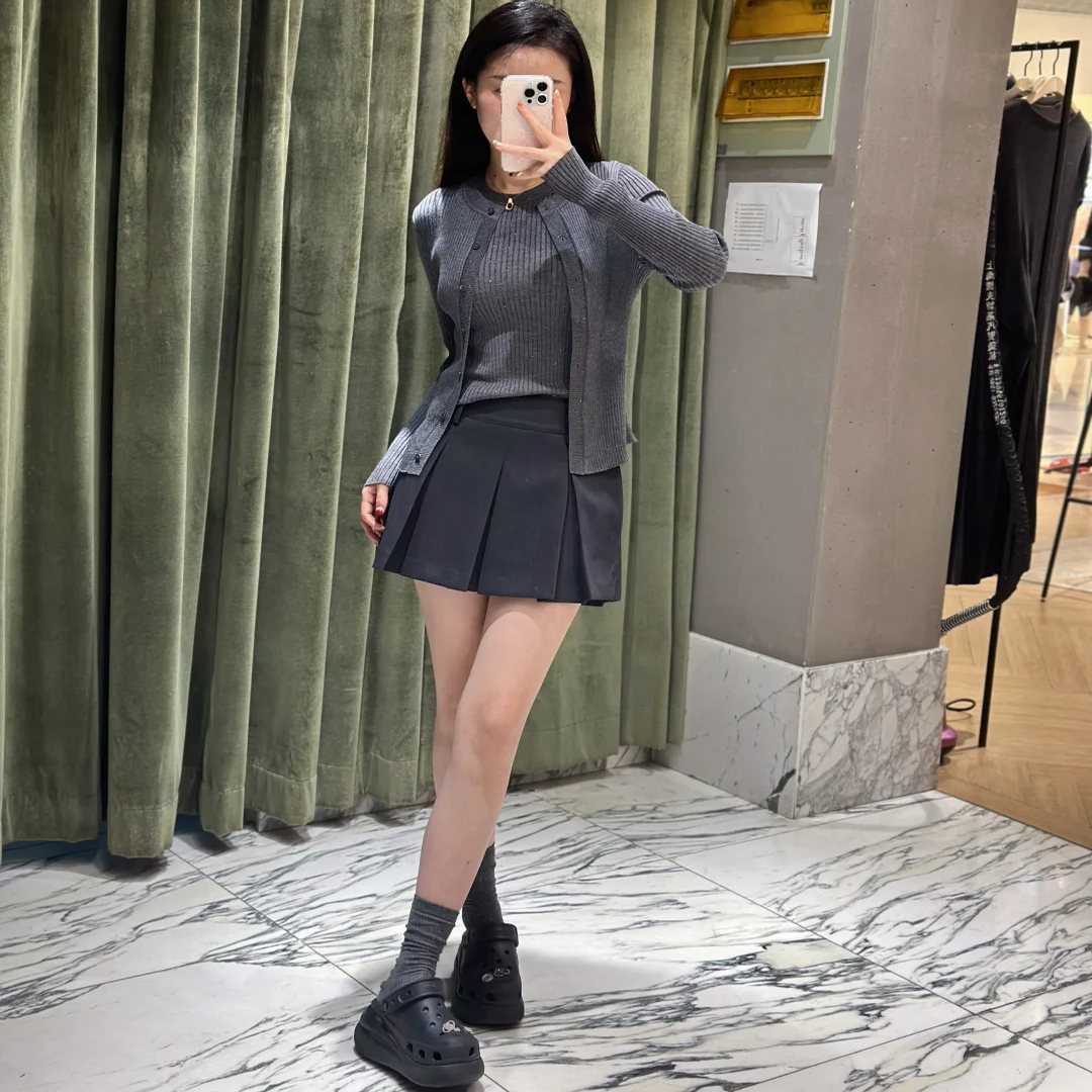 針織衫 條紋短袖 新款 毛衣外套 開衫 兩件套圓領修身 長袖 RARN2025秋裝