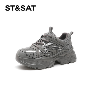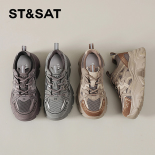 厚底增高休閑情侶透氣運動鞋 子 女2025新款 駱駝銀月戶外復古老爹鞋
