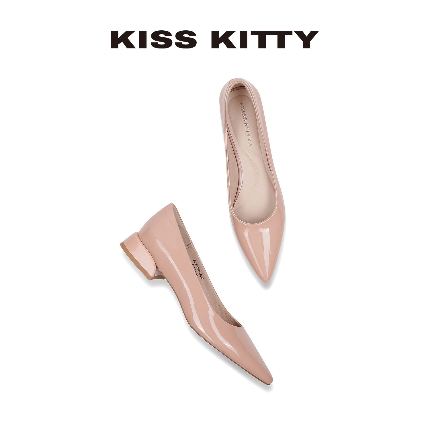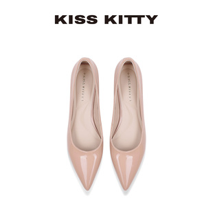 淺口低跟甜妹單鞋 KISSKITTY裸粉色高跟鞋 女2025夏季 新款 尖頭女鞋由
