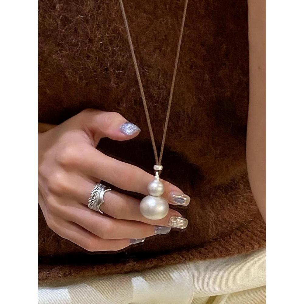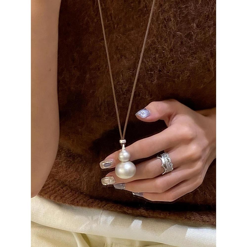 銀色葫蘆吊墜項鏈清冷感簡約百搭頸鏈氣質優雅高級感毛衣鏈 新中式由