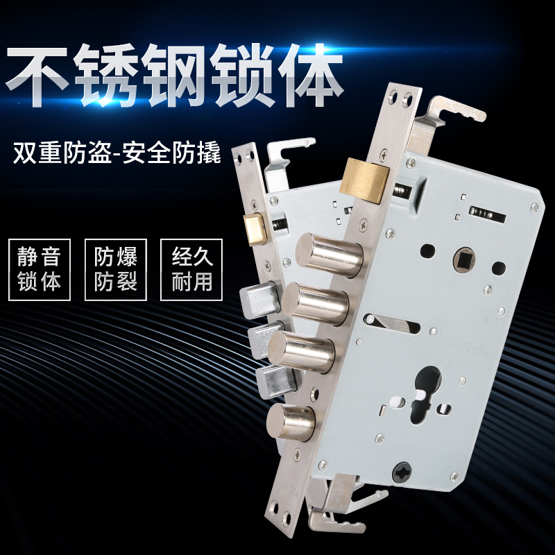 304不銹鋼防盜門鎖體機械單活雙活雙快入戶大門靜音指紋鎖通用型