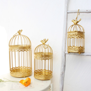 飾婚慶婚禮多肉花架掛飾綠植家居飾品陽臺庭院擺件鐵藝 金色鳥籠裝由