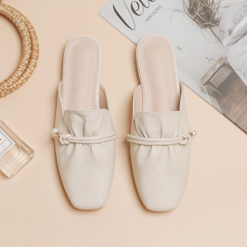 夏季 法式 包頭半拖鞋 女2025年新款 無后跟懶人平底外穿半托穆勒單鞋由