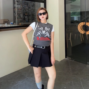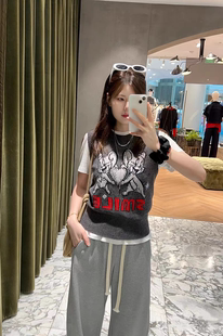 貓和老鼠聯(lián)名系列刺繡綿羊毛MBE3SWT049 MO毛衣背心2025秋新品由
