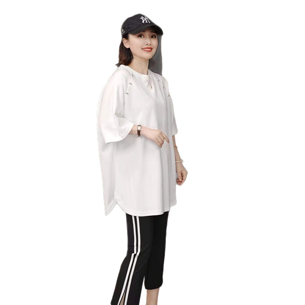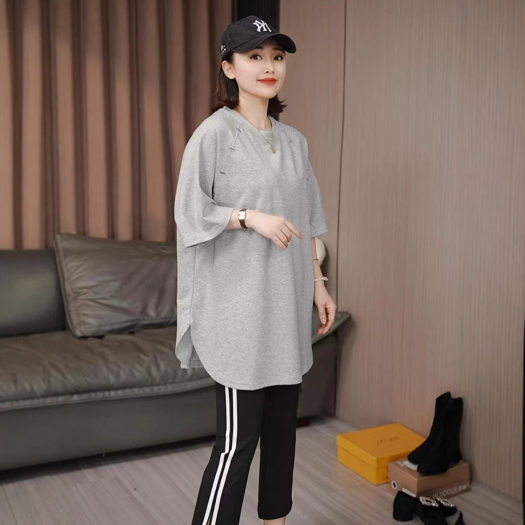 寬松百搭簡約大版 新中式 純色休閑中長款 T恤女2025年春夏新款 短袖由