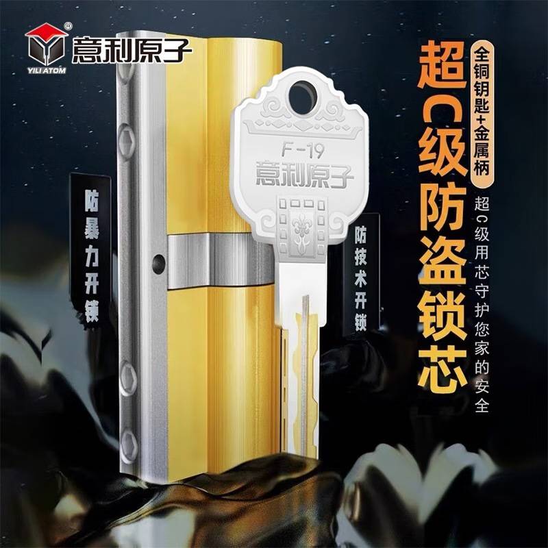 入戶門大門鎖超C級銅鎖芯加厚面板 工廠直銷意利原子防盜門鎖套裝由