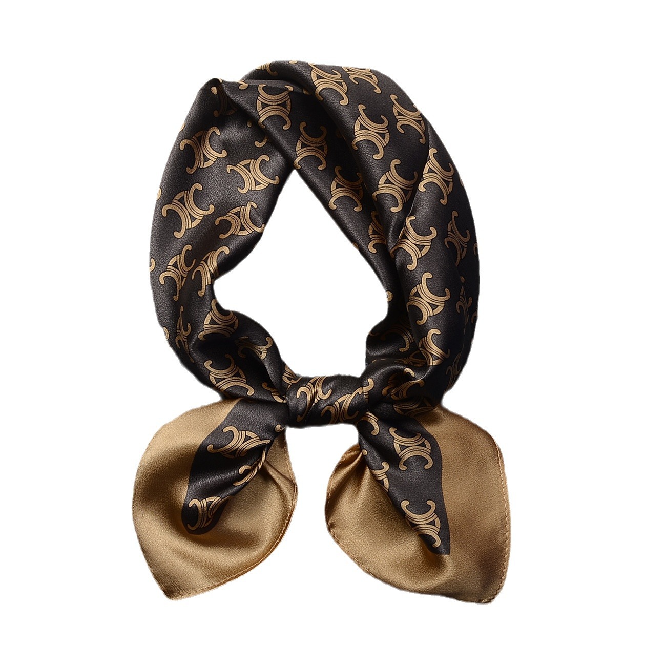 日本品質咖色韓版 真絲絲巾女秋冬季 凱旋門裝 飾真絲53cm小方巾 時尚由