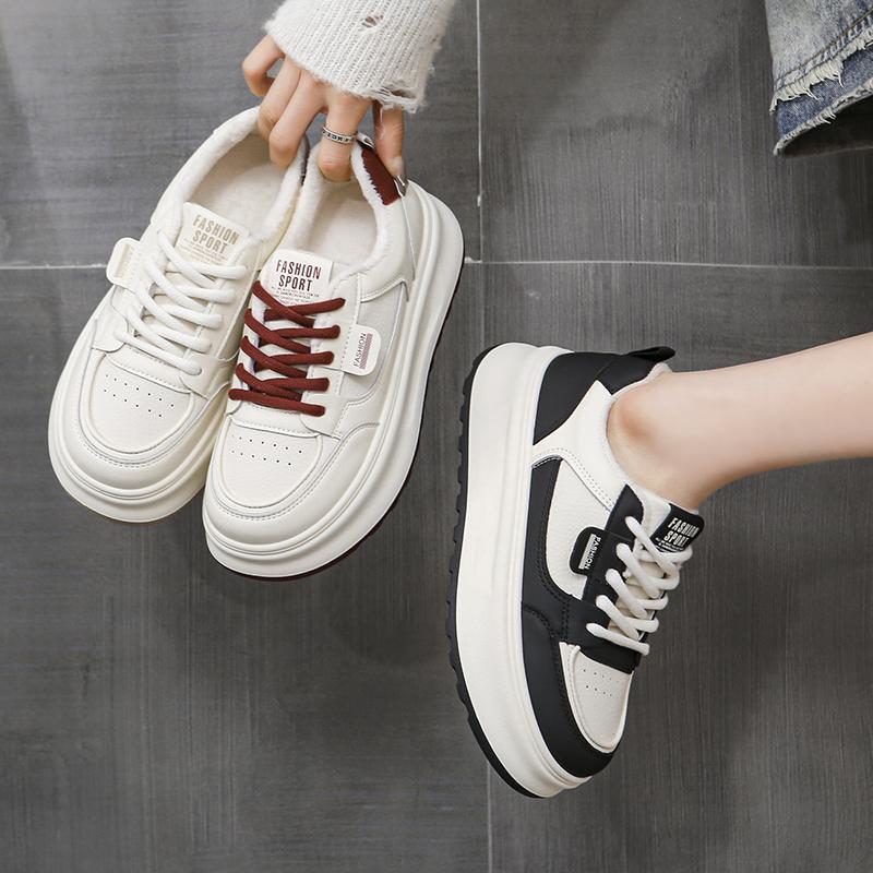 秋冬洋氣增高厚底女士休閑鞋 2025新款 百搭加絨二鞋 休0921c 小白鞋由